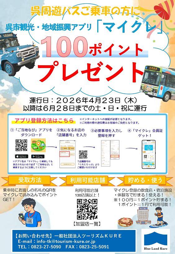 呉周遊バスツアー参加の方に「マイクレ」100ポイントプレゼント!